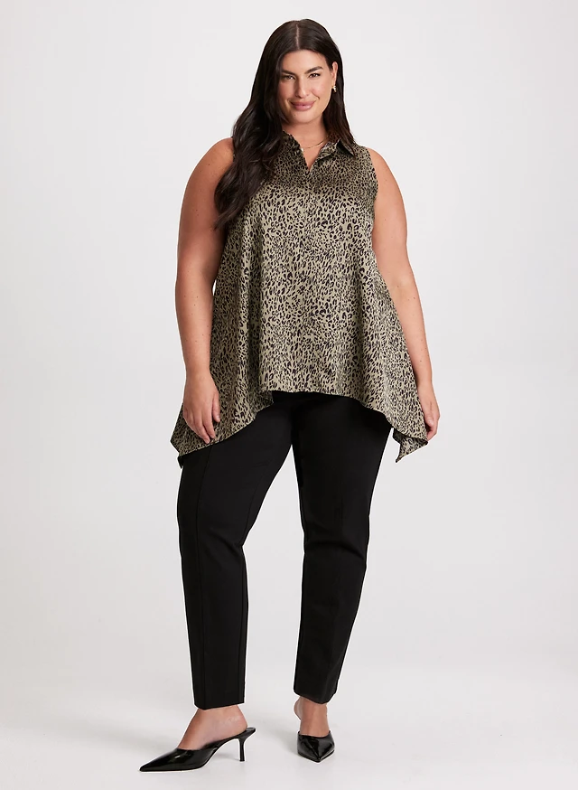 Animal Print Button-Up Tunic & Pintuck Jeans