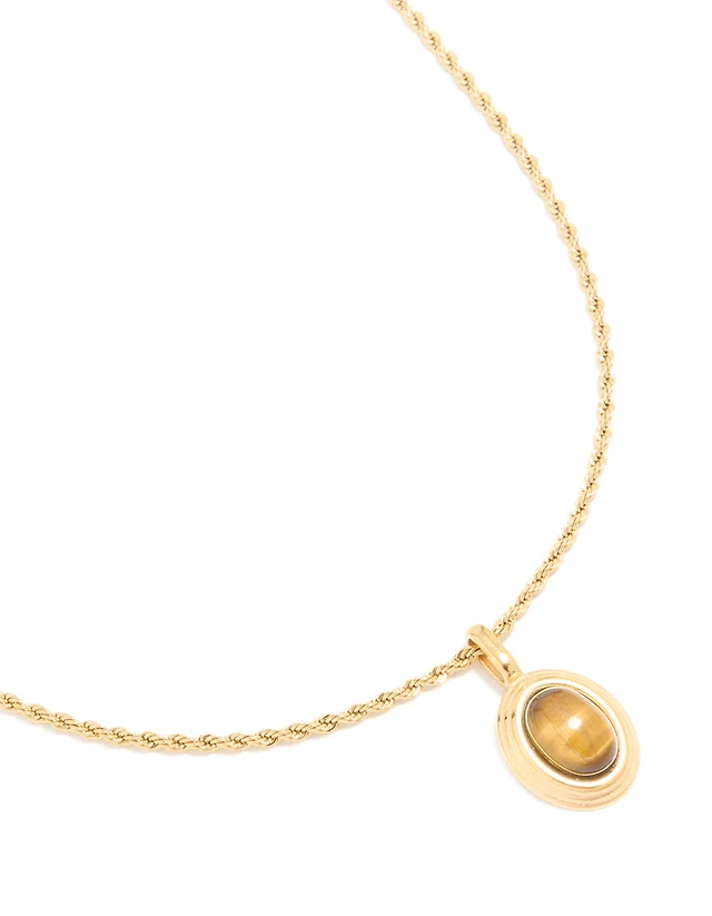 Waterproof Gold Plated Stainless Steel Tiger Eyes Semi Precious Stone Pendant Necklace