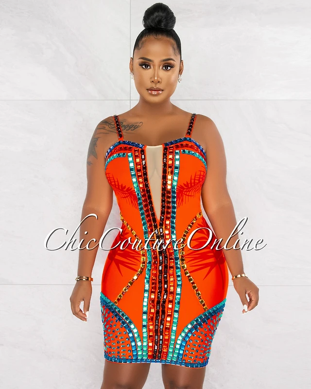 *Variya Red Keyhole Mesh Rhinestones Mini Dress