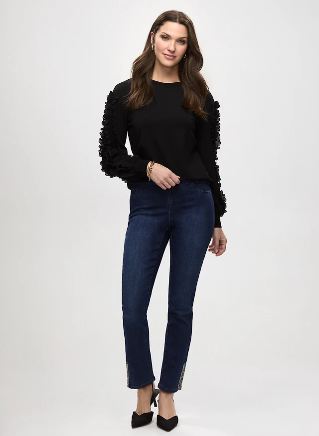 Ruffle Trim Top & Pull-On Jeans