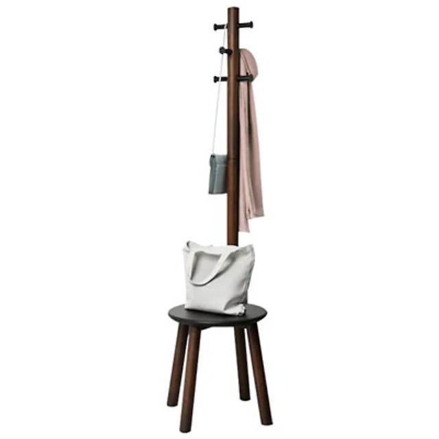 Pillar 2-in-1 Coat Rack & Stool - White/Natural
