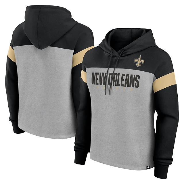 Women's Fanatics Heather Gray/Black New Orleans Saints Bold Play Call Pullover Hoodie