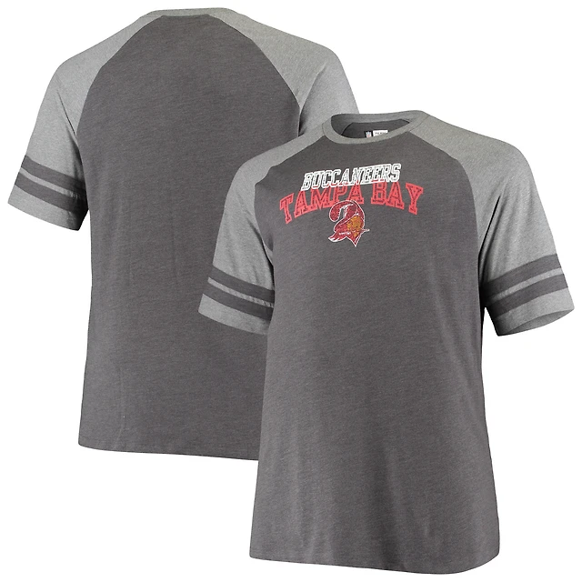 Men's Black/Heathered Gray Tampa Bay Buccaneers Big & Tall Throwback 2-Stripe Raglan T-Shirt