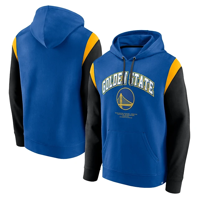 Men's Fanatics Royal Golden State Warriors Contrast Pieced Pullover Hoodie