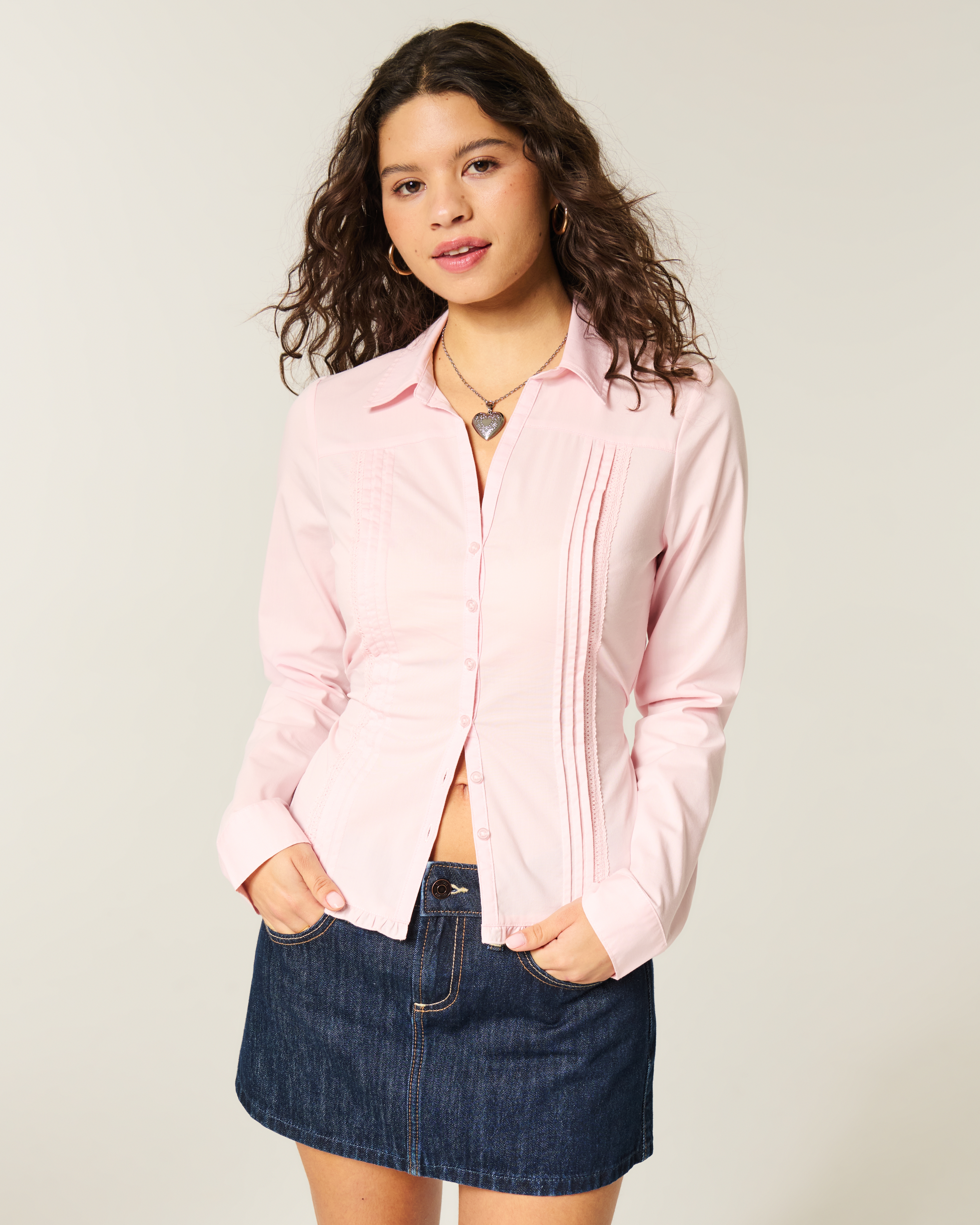Short-Sleeve Stretch Poplin Button-Through Shirt