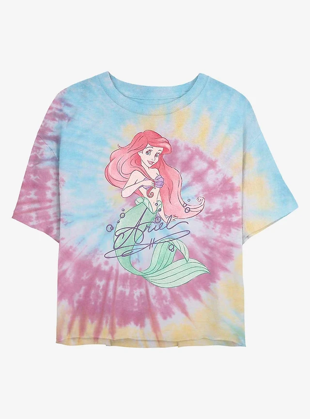 Disney The Little Mermaid Signed Ariel Tie Dye Crop Girls T-Shirt