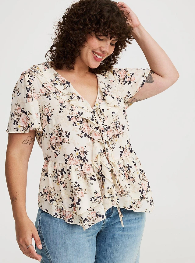 Ardene Textured Lace Short Sleeve Peasant Top in Beige | Size | Polyester/Elastane/Polyamide
