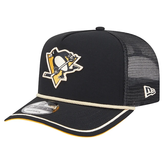 Men's New Era Black Las Vegas Raiders Stacked A-Frame Trucker 9FORTY Adjustable Hat