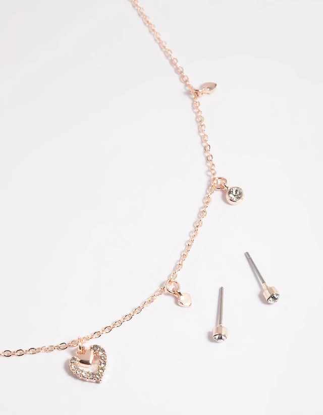 Rose Gold Heart Droplet Necklace & Earrings Set