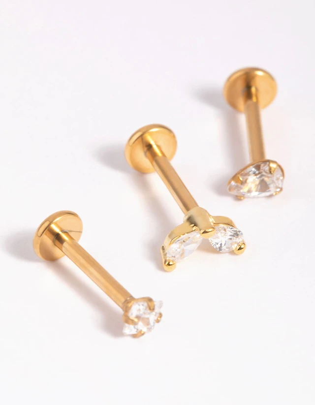 Gold Plated Titanium Cubic Zirconia Flat Back Pack