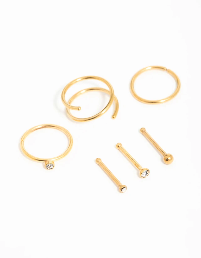 Gold Plated Surgical Steel Cubic Zirconia Ear & Body Jewellery Set