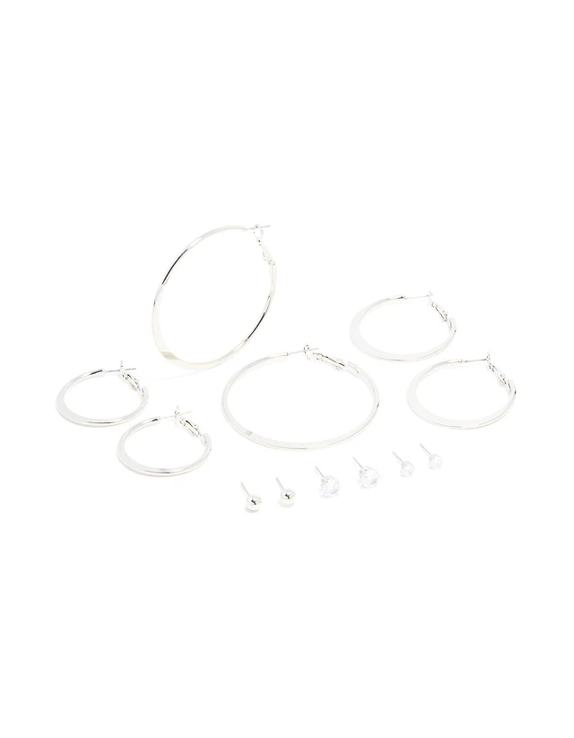 Silver Minimal Hoop & Stud Earrings 6-Pack