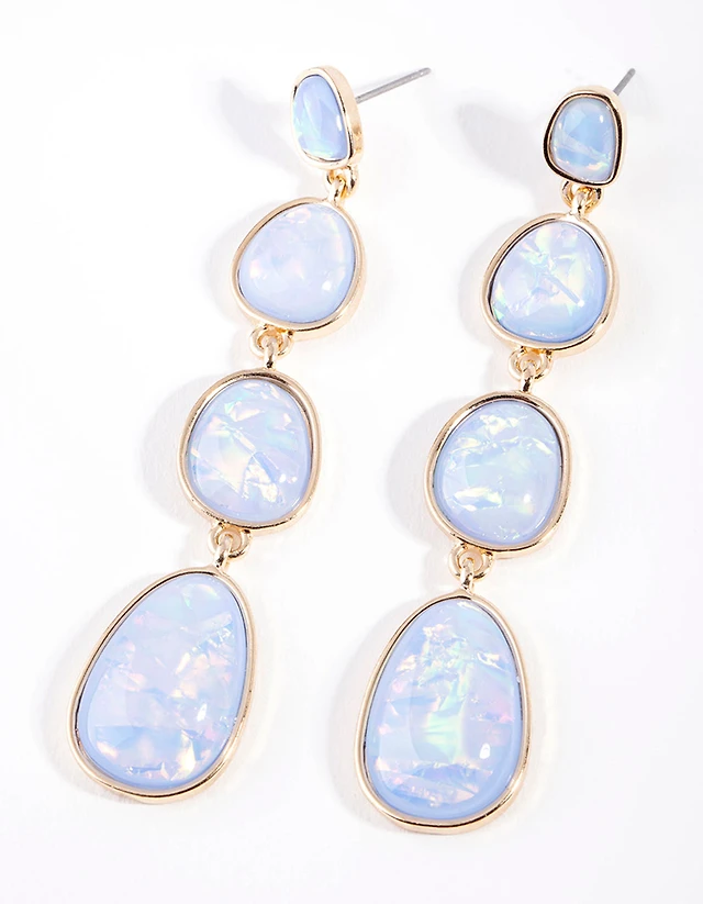 Gold Plated Green Semi Precious Stone Chain Drop & Stud Earrings 4-Pack