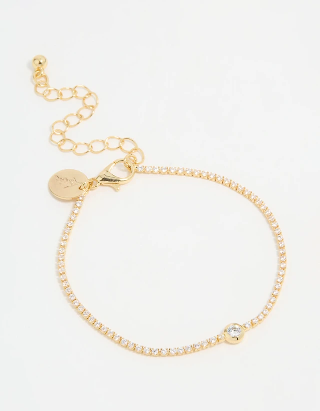 Gold Plated Cubic Zirconia Pave & Round Stone Bracelet