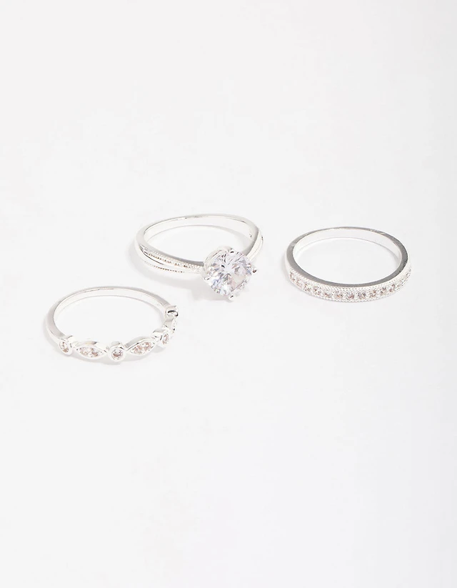 Silver Plated Cubic Zirconia Teardrop Stone Ring Pack