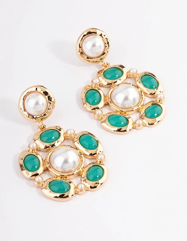 Gold Plated Green Semi Precious Cross Y-Necklace