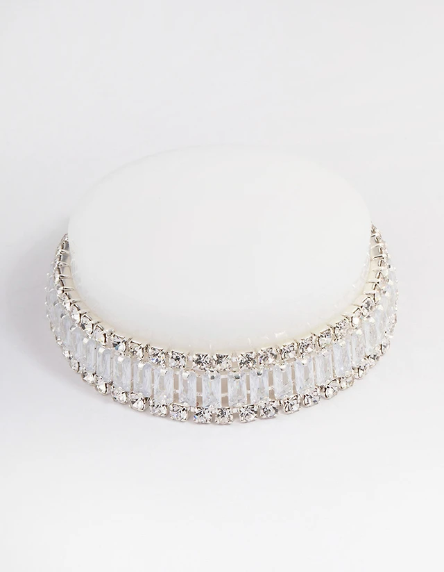 Silver Plated Cubic Zirconia Round & Baguette Bracelet