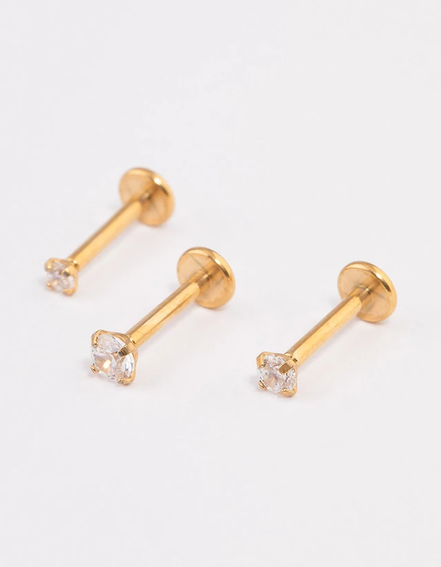 Gold Plated Surgical Steel Cubic Zirconia Stud Flat Back Pack