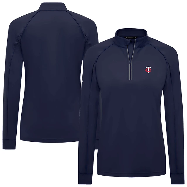 Women's Levelwear Navy Minnesota Twins Kinetic Insignia Core Raglan Quarter-Zip Top