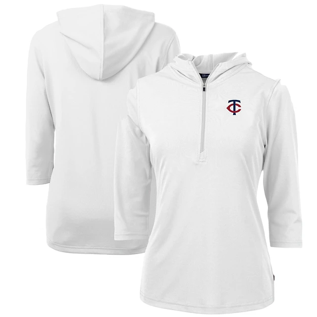 Women's Cutter & Buck White Minnesota Twins DryTec Virtue Eco Pique Recycled Half-Zip Pullover Hoodie Top