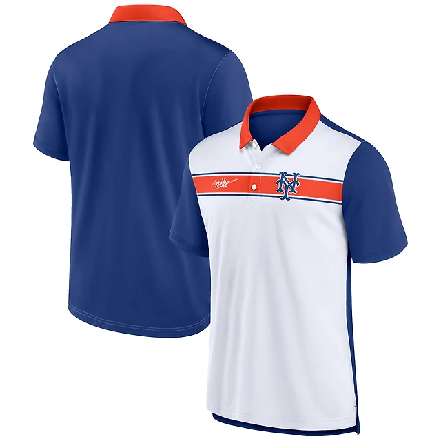 Men's Nike White/Royal New York Mets Rewind Stripe Polo
