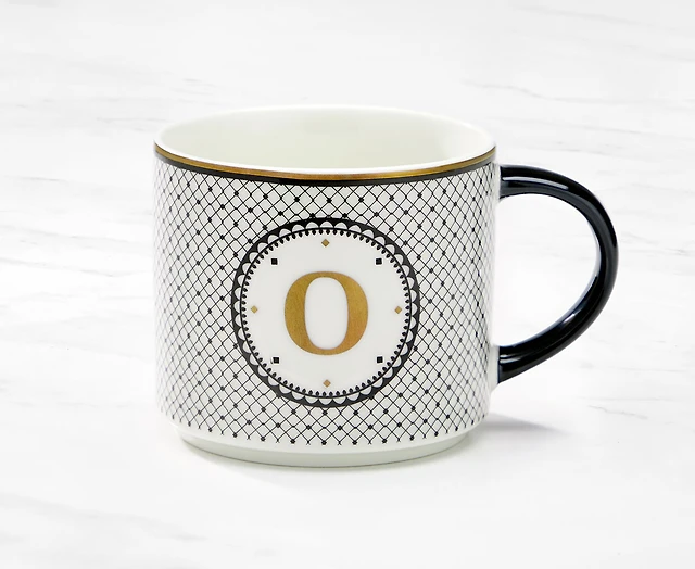 Monogram Mug with Letter O, Black and Gold, 480 ml
