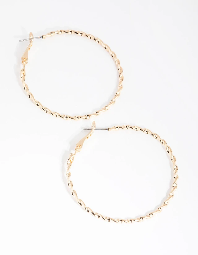 Gold Plated Sterling Silver Open Rope Hoop Earrings