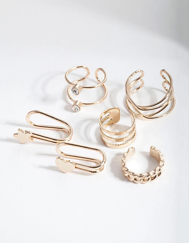 Gold Plated Sterling Silver Nose Hook Stud Pack