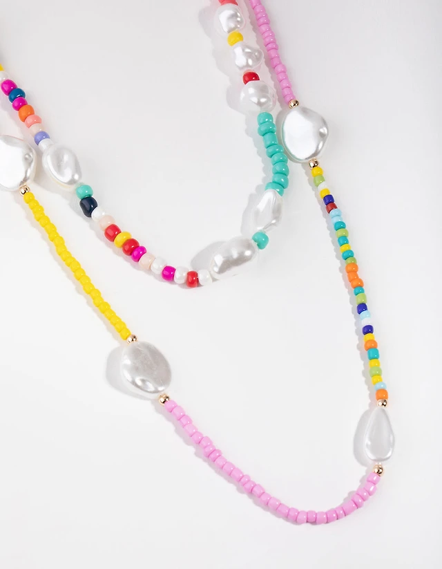 Gold Bead & Pearl 2-Row Necklace