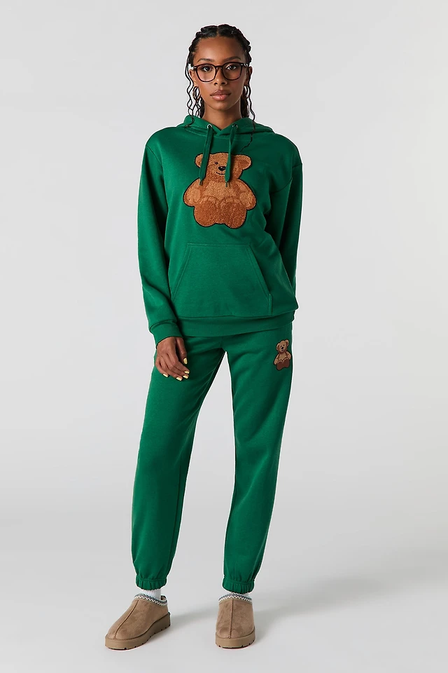 Teddy Bear Chenille Embroidered Fleece Oversized Hoodie