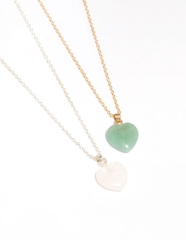 Gold Semi-Precious Mini Heart Necklace Pack