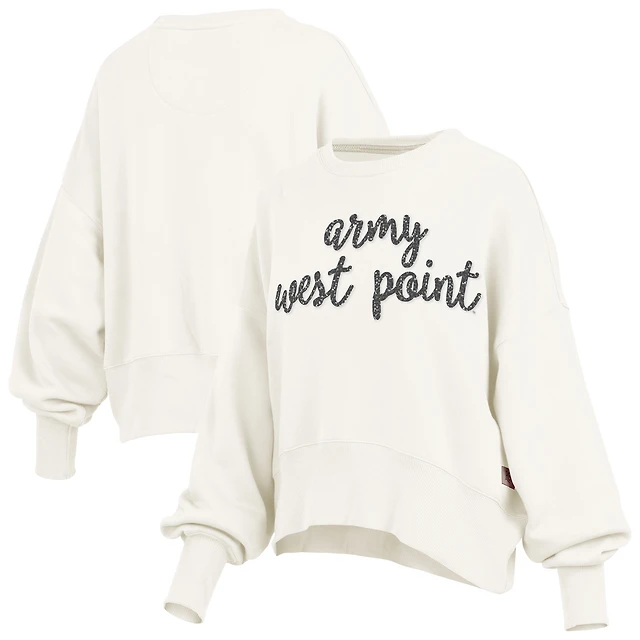 Women's Pressbox White Army Black Knights Oversized Janice Retro Waist-Length Pullover Sweatshirt