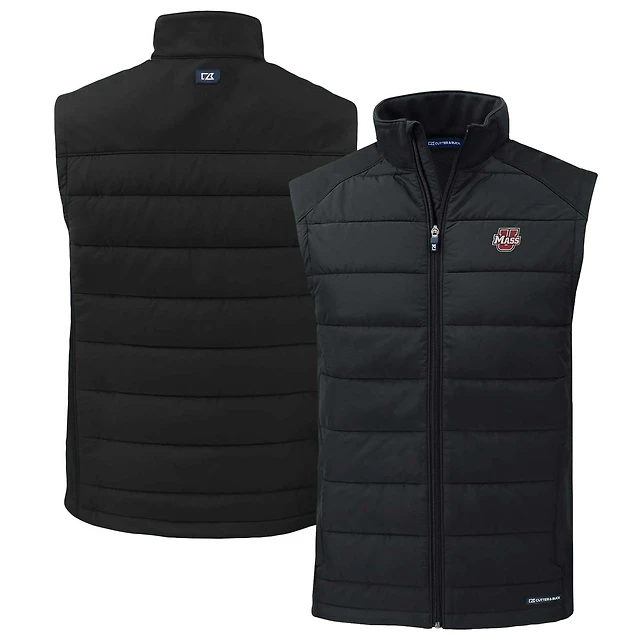 Men's Cutter & Buck Black UMass Minutemen Evoke Hybrid Eco Softshell Recycled Full-Zip Vest