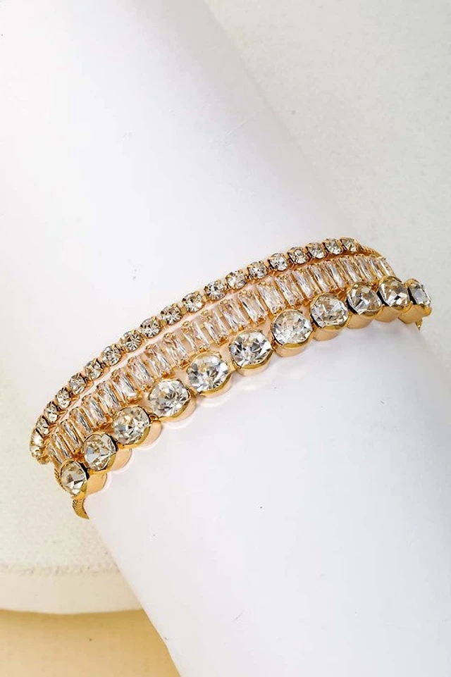 Burna Gold Adjustable Rhinestone Chain Bracelet Set