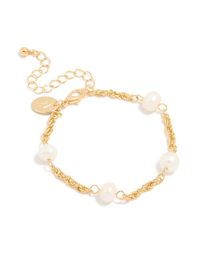 Gold Fine Snake Chain Pearl Drop Earrings