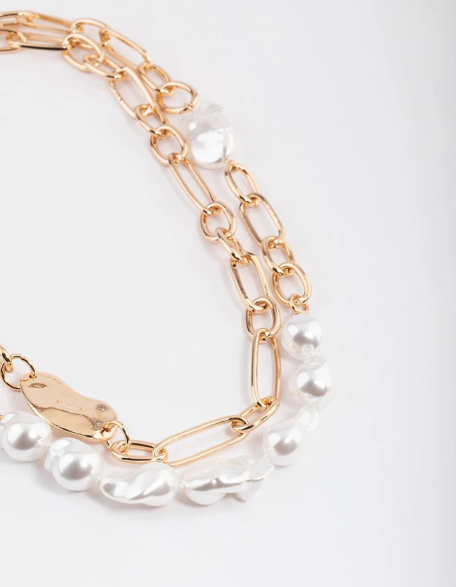 Gold Plated Chain & Hammered Circle Layered Necklace