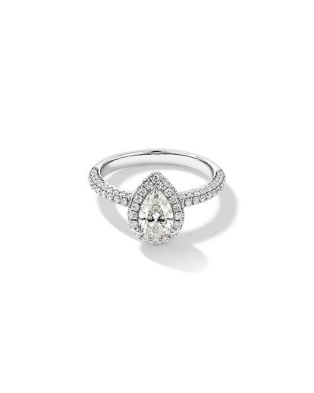 1.65 Carat TW Pear Cut Diamond Pave Halo Engagement Ring Platinum
