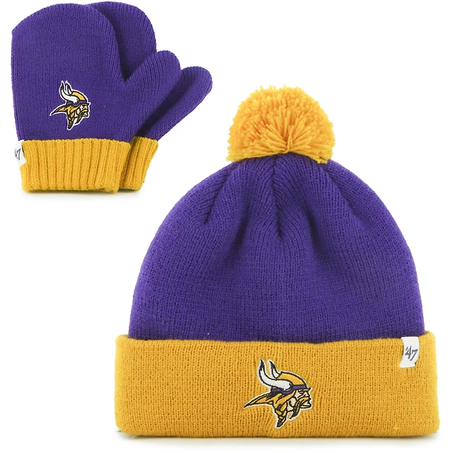 Toddler '47 Purple/Gold Minnesota Vikings Bam Bam Cuffed Knit Hat with Pom and Mittens Set