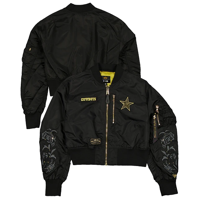 Women's New Era x Alpha Industries Black Dallas Cowboys Full-Zip Crop Jacket