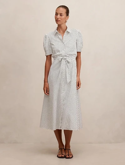 Polka Dot Cotton Midi Shirt Dress