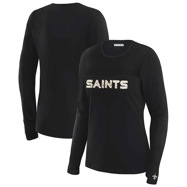 Women's WEAR by Erin Andrews x Gracie Hunt Black New Orleans Saints Mesh Panel Long Sleeve T-Shirt