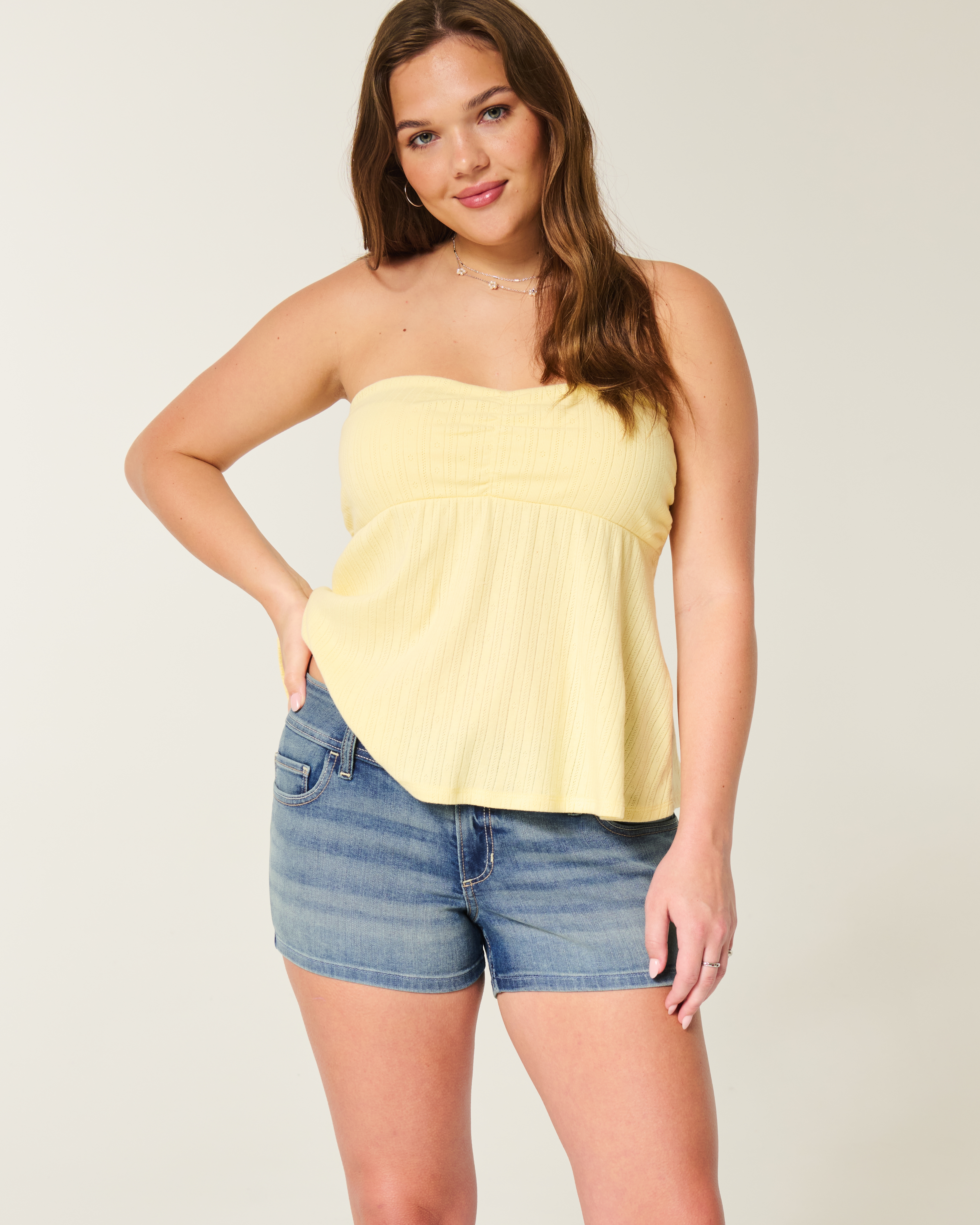 Ultra Low-Rise Medium Wash Shortie Shorts