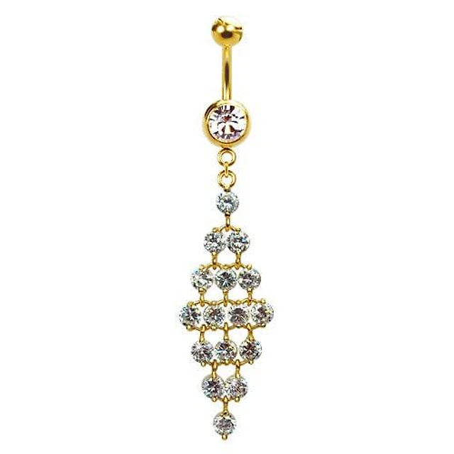 316L Surgical Steel Gold PVD Diamond Chandelier Dangle Belly Ring