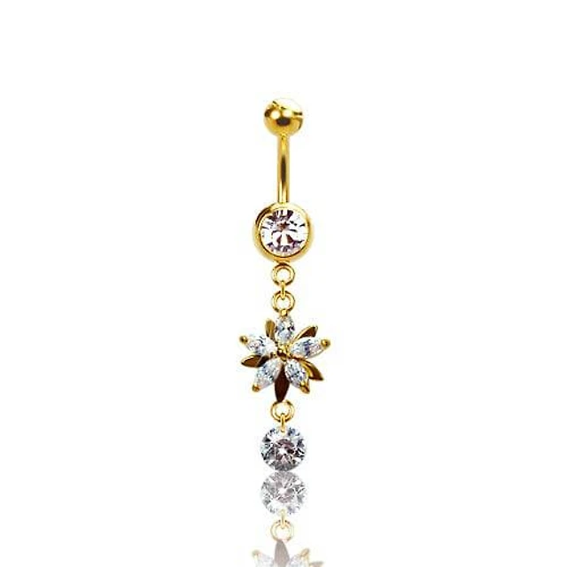 316L Surgical Steel Gold PVD Diamond Flower Dangle Belly Ring