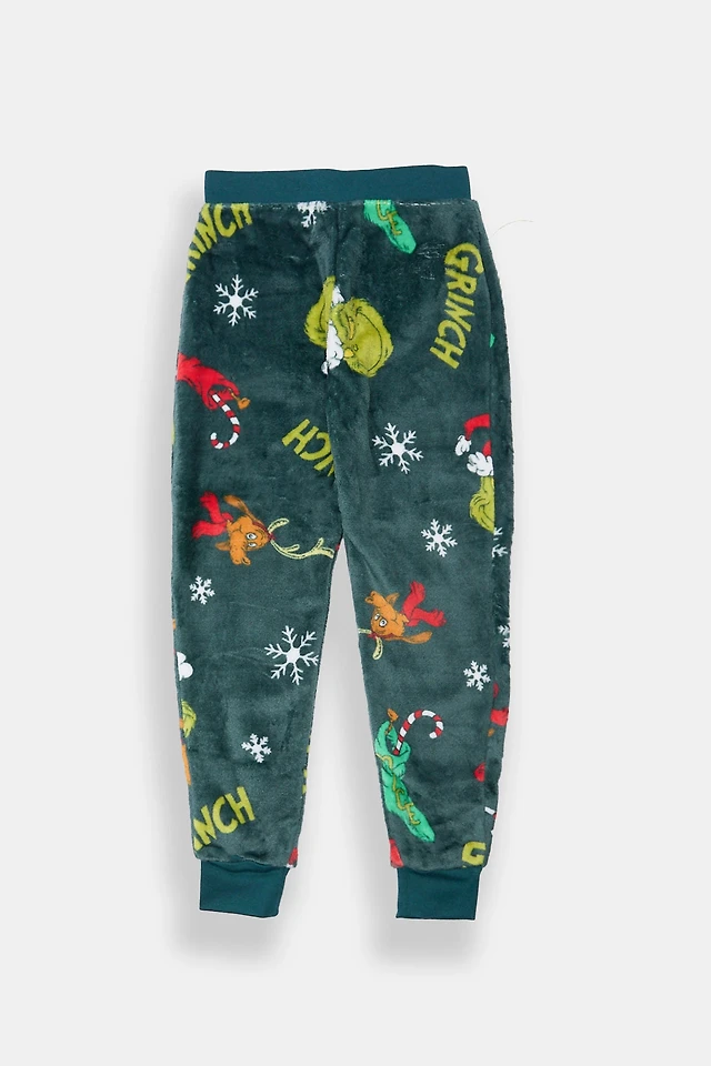 Youth The Grinch Graphic Print Pajama Pant - Dark Green /
