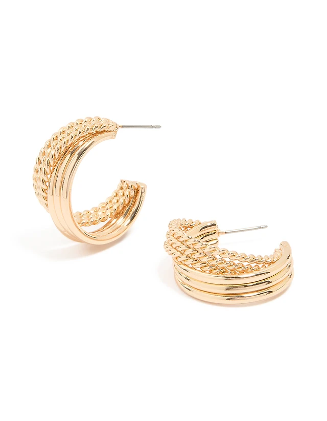 Gold Mixed Size Twisted Hoop Earrings 2-Pack