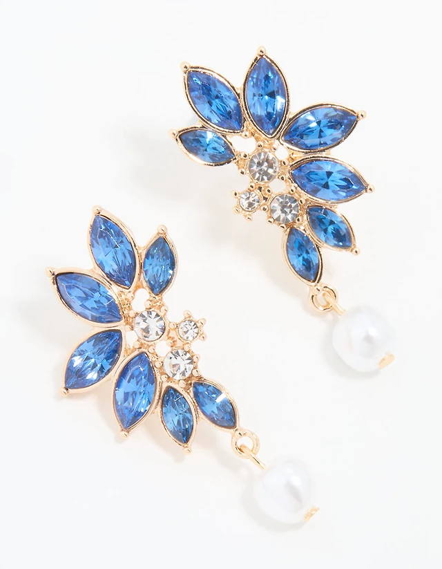 Gold Brown Diamante Marquise Fan Earrings