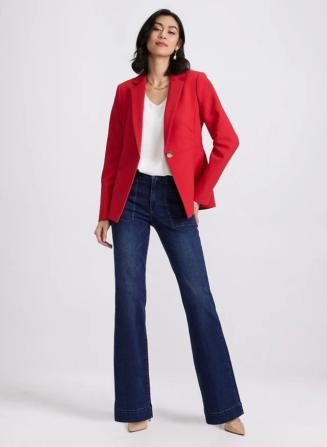 Notched Lapel Blazer & Wide-Leg Jeans