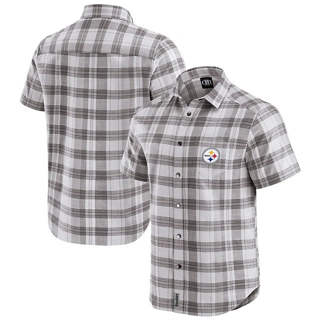Men's Darius Rucker Collection by Fanatics Gray Detroit Lions Team Plaid Short Sleeve Full-Snap Shirt