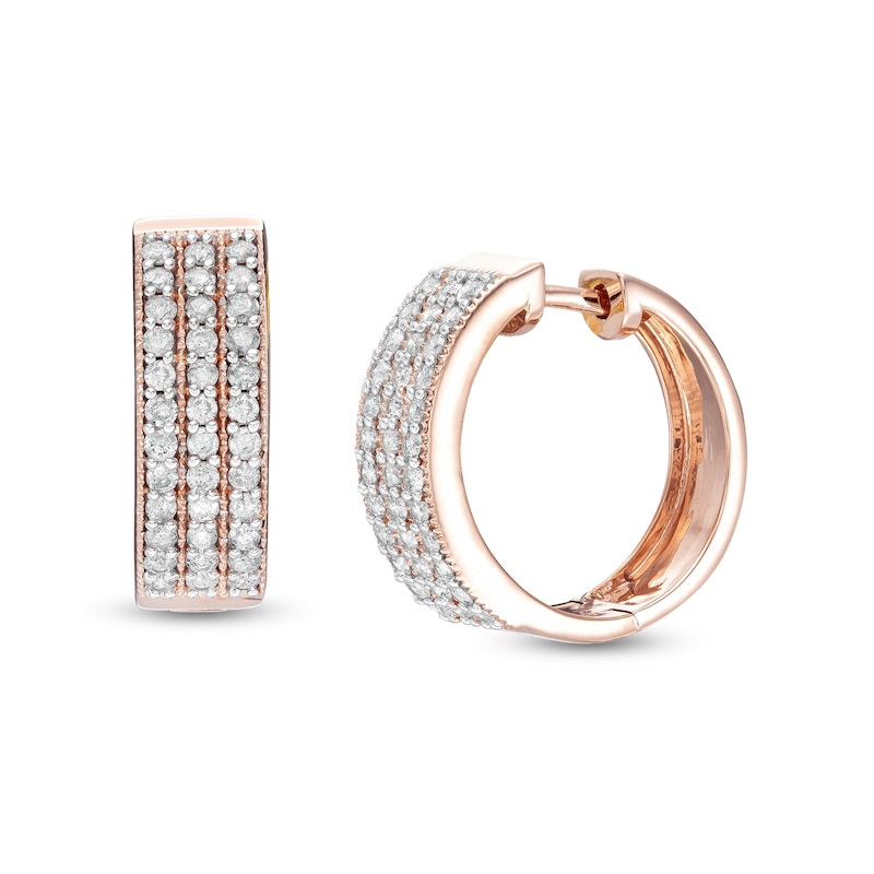 0.95 CT. T.W. Diamond Triple Row Hoop Earrings in 10K Rose Gold